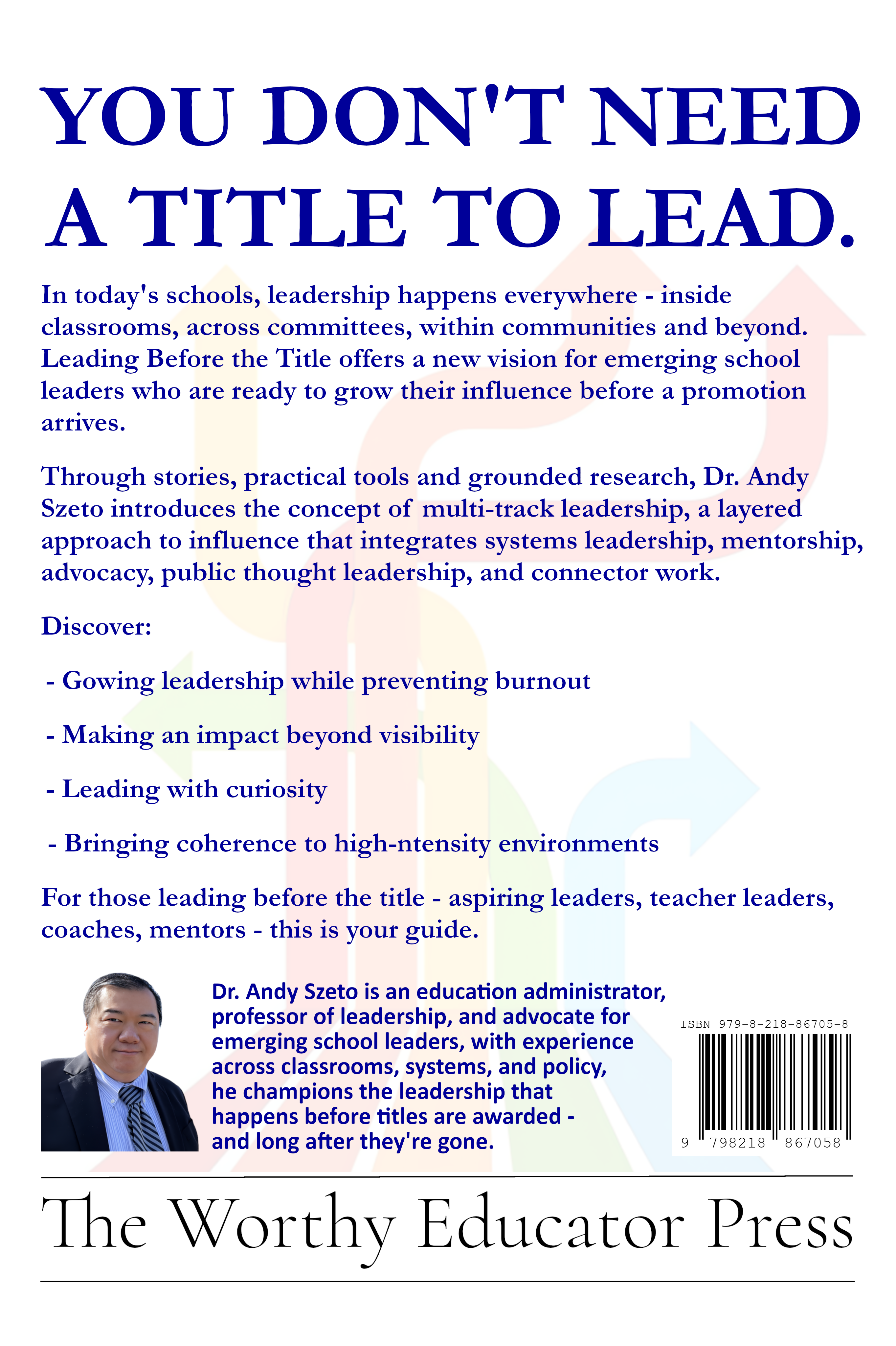 Leading Before the Title is written for emerging school leaders. You may be a teacher considering administration and unsure where to start, or mentoring colleagues, leading a team, and designing curriculum while still in the classroom, or maybe you’re already guiding others and looking for a stronger way to support the next generation of leaders.